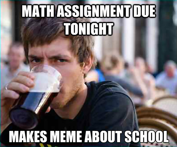 Math Assignment due tonight Makes meme about school