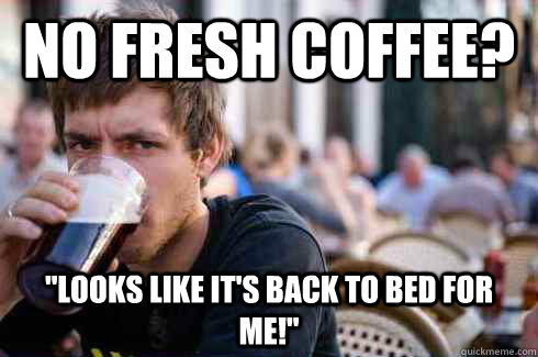 No Fresh coffee? "Looks like it's back to bed for me!"