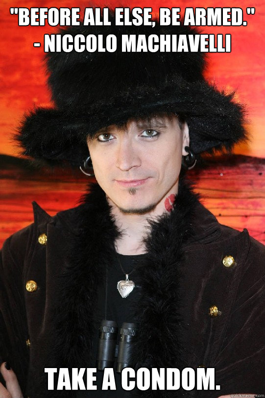 "Before all else, be armed." - Niccolo Machiavelli Take a condom.