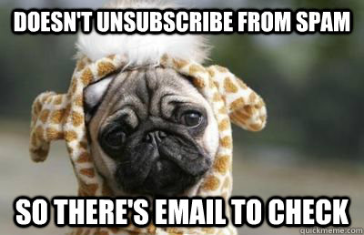doesn't unsubscribe from spam so there's email to check