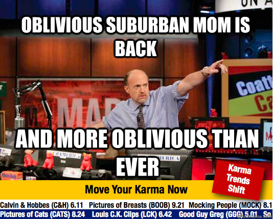 OBLIVIOUS SUBURBAN MOM IS BACK AND MORE OBLIVIOUS THAN EVER