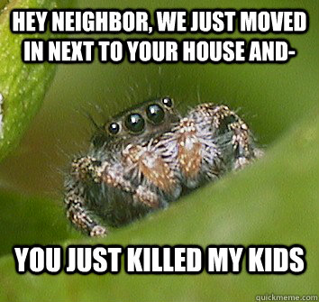 Hey neighbor, we just moved in next to your house and- you just killed my kids