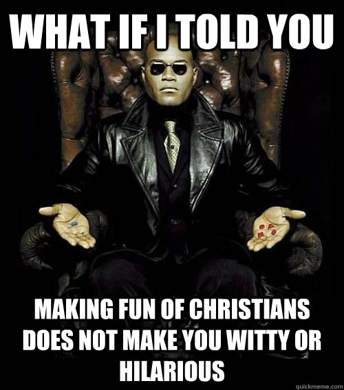 What if I told you Making fun of christians does not make you witty or hilarious