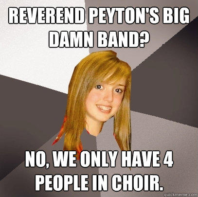 Reverend Peyton's big damn band? No, we only have 4 people in choir.