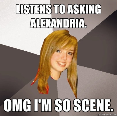 Listens to Asking Alexandria. omg i'm so scene.