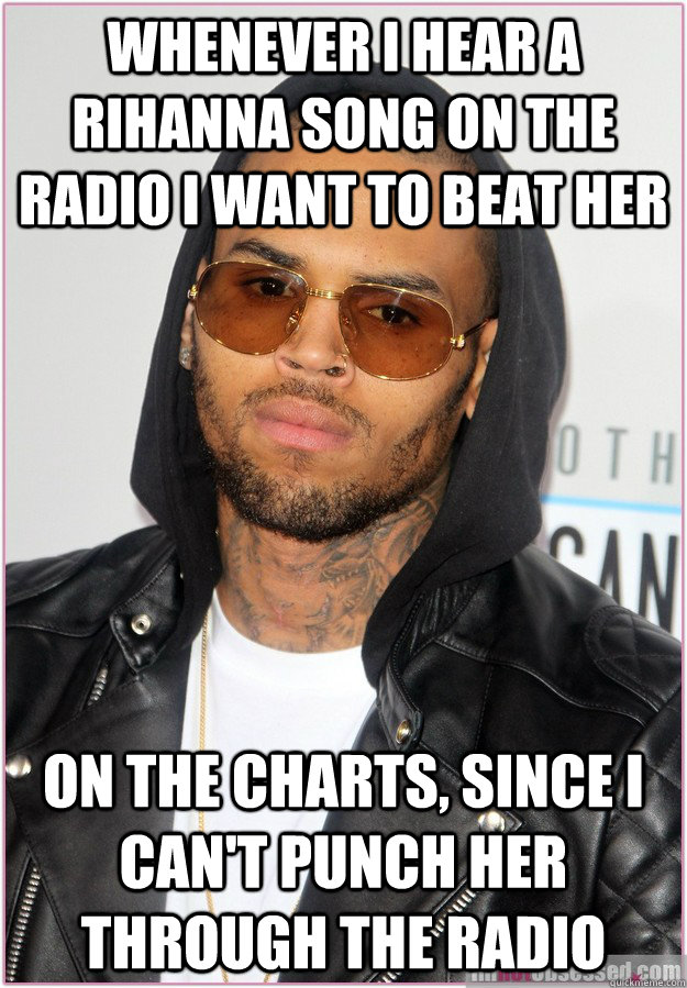 Whenever I hear a Rihanna song on the radio I want to beat her on the charts, since I can't punch her through the radio