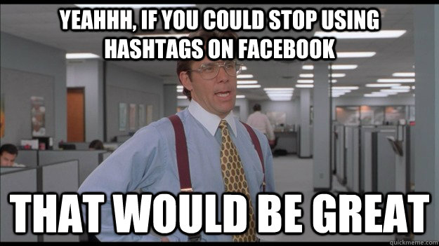 Yeahhh, if you could stop using hashtags on facebook That would be great