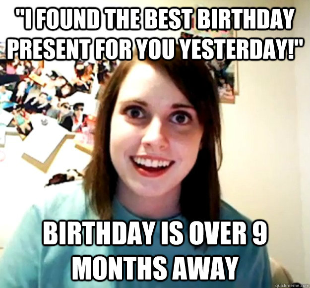 "I found the best birthday present for you yesterday!" Birthday is over 9 months away