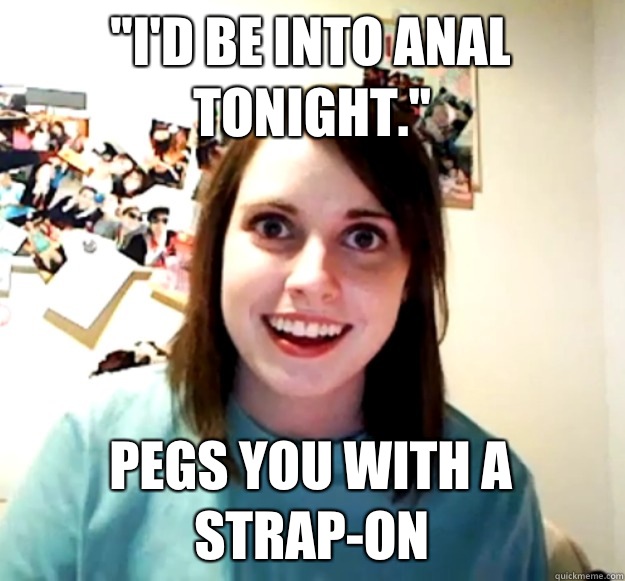 "I'd be into anal tonight." Pegs you with a strap-on