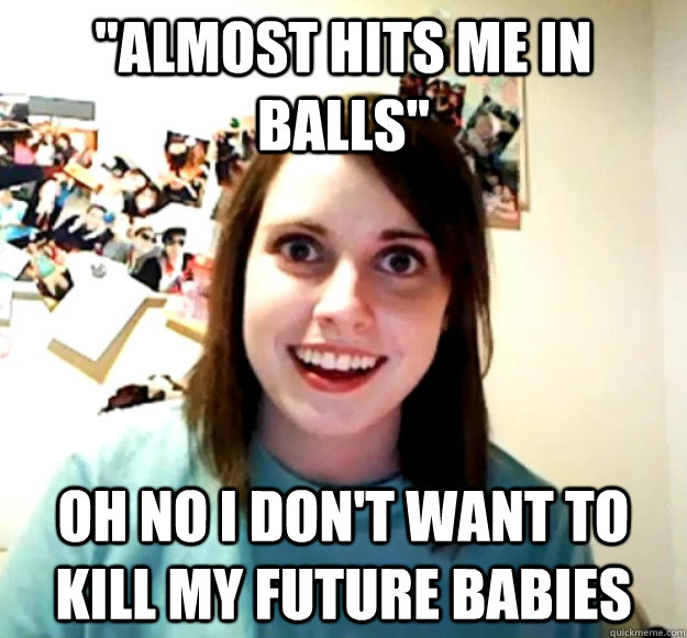 "Almost hits me in balls" Oh no i don't want to kill my future babies