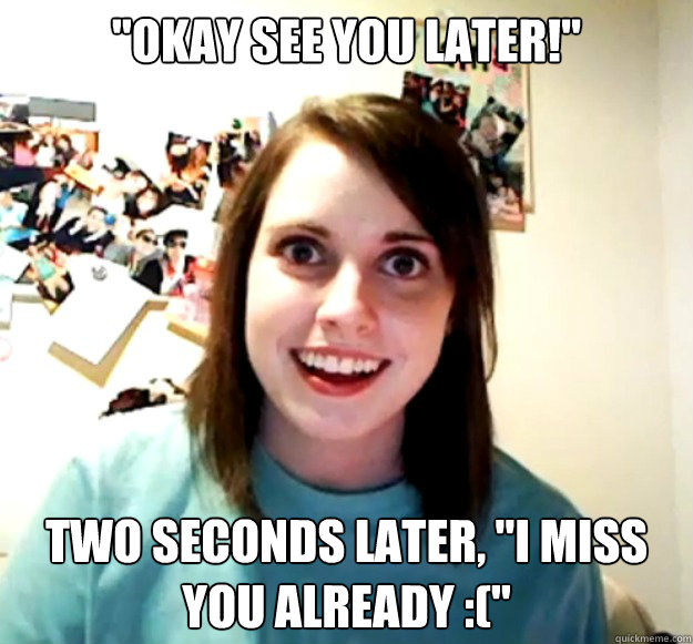 "Okay see you later!" Two seconds later, "I miss you already :("