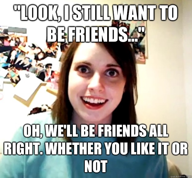 "look, I still want to be friends..." Oh, we'll be friends all right. Whether you like it or not