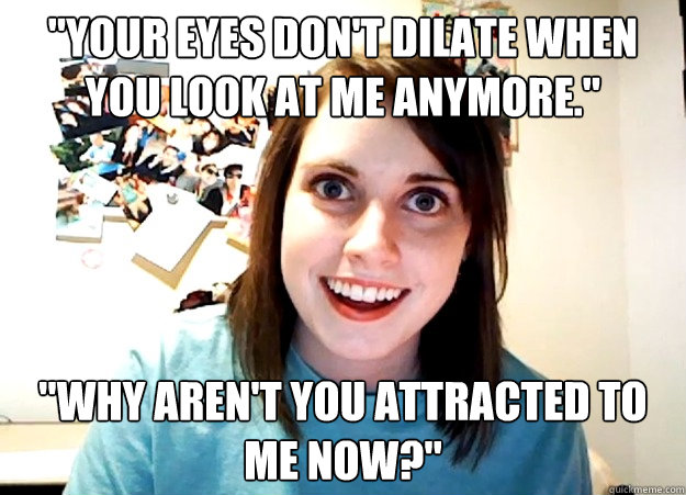 "your eyes don't dilate when you look at me anymore." "Why aren't you attracted to me now?"
