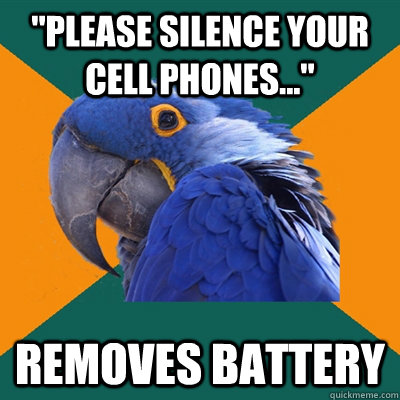 "Please silence your cell phones..." Removes battery