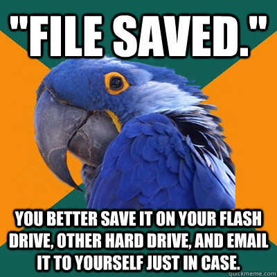 "File saved." You better save it on your flash drive, other hard drive, and email it to yourself just in case.