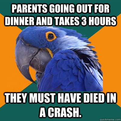 Parents going out for dinner and takes 3 hours they must have died in a crash.