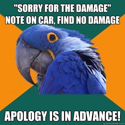 "sorry for the damage" note on car, find no damage apology is in advance!