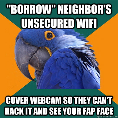 "borrow" neighbor's unsecured WiFi cover webcam so they can't hack it and see your fap face