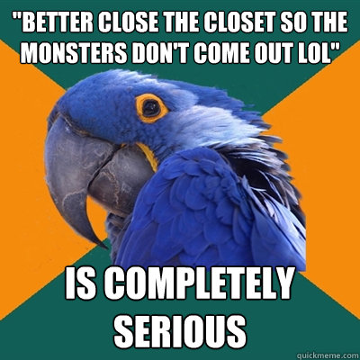 "better close the closet so the monsters don't come out lol" is completely serious