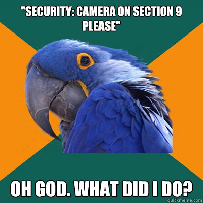 "security: camera on section 9 please" oh god. what did I do?