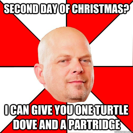 Second day of Christmas? I can give you one turtle dove and a partridge