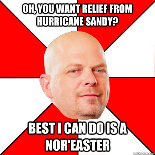 Oh, you want relief from hurricane sandy? Best I can do is a nor'easter