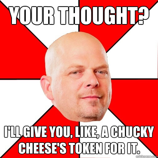 Your thought? I'll give you, like, a chucky cheese's token for it.