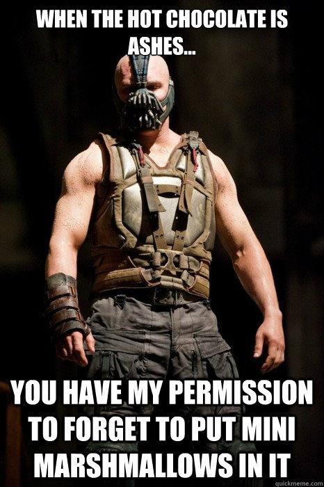 When the hot chocolate is ashes... you have my permission to forget to put mini marshmallows in it