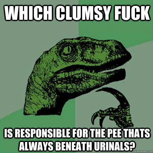 Which clumsy fuck is responsible for the pee thats always beneath urinals?