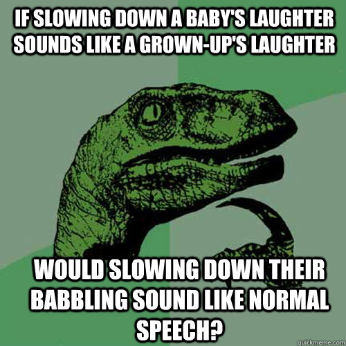 if slowing down a baby's laughter sounds like a grown-up's laughter would slowing down their babbling sound like normal speech?