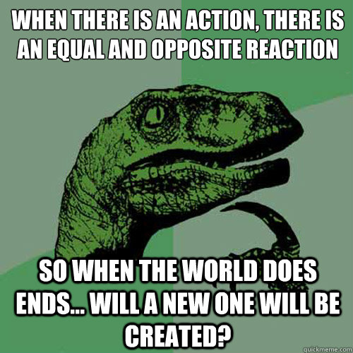 When there is an action, there is an equal and opposite reaction So when the world does ends... will a new one will be created?