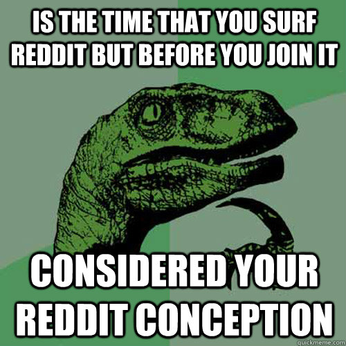 IS THE TIME THAT YOU SURF REDDIT BUT BEFORE YOU JOIN IT CONSIDERED YOUR REDDIT CONCEPTION