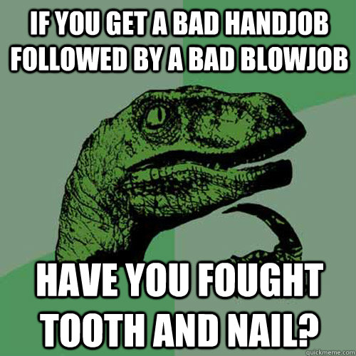 If you get a bad handjob followed by a bad blowjob have you fought tooth and nail?