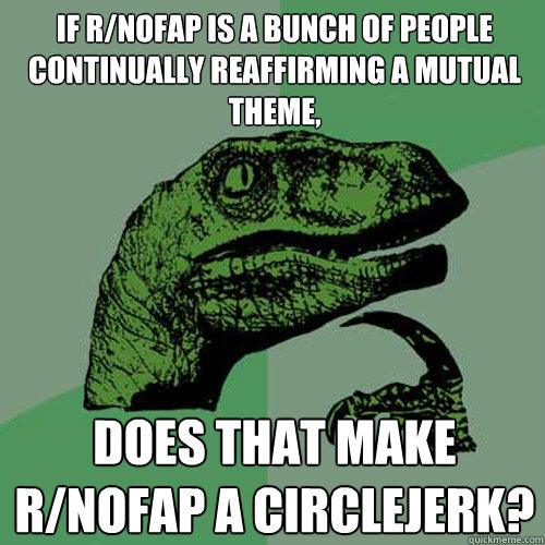 If r/nofap is a bunch of people continually reaffirming a mutual theme, Does that make r/nofap a circlejerk?