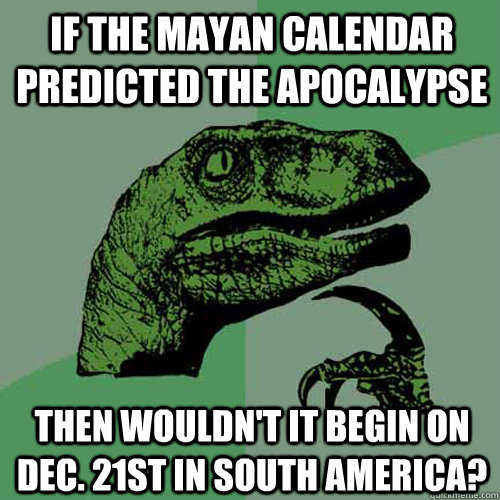 If the Mayan Calendar predicted the apocalypse Then wouldn't it begin on Dec. 21st in south america?