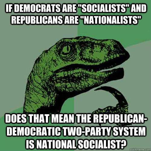 If Democrats are "socialists" and Republicans are "Nationalists" Does that mean the Republican-Democratic two-party system is National Socialist?