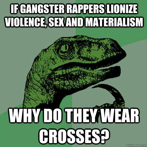 if gangster rappers lionize violence, sex and materialism why do they wear crosses?