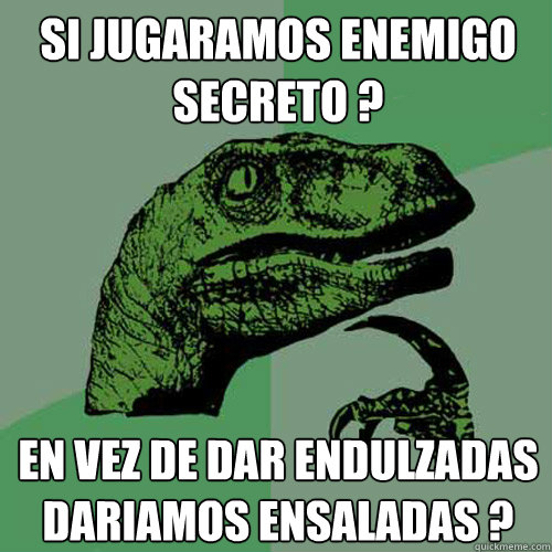 Si jugaramos enemigo secreto ? en vez de dar endulzadas dariamos ensaladas ?