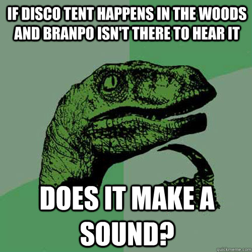 If disco tent happens in the woods and branpo isn't there to hear it does it make a sound?
