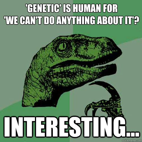 'Genetic' is human for 'we can't do anything about it'? interesting...