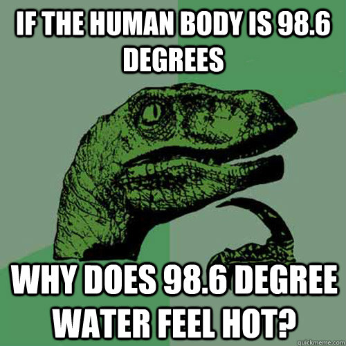 If the human body is 98.6 degrees why does 98.6 degree water feel hot?