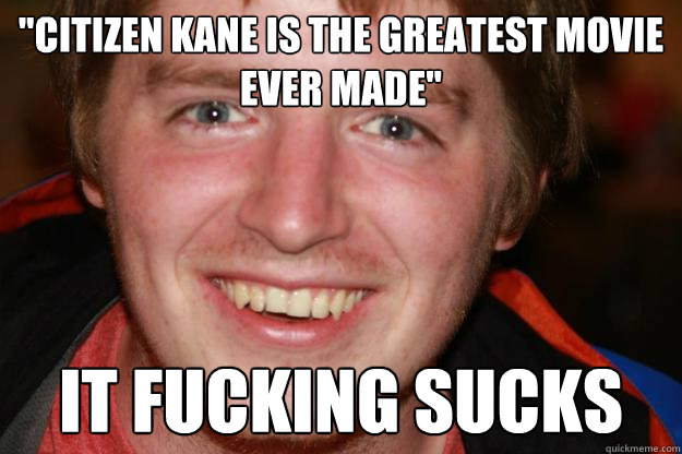 "Citizen Kane is the greatest movie ever made" It fucking sucks
