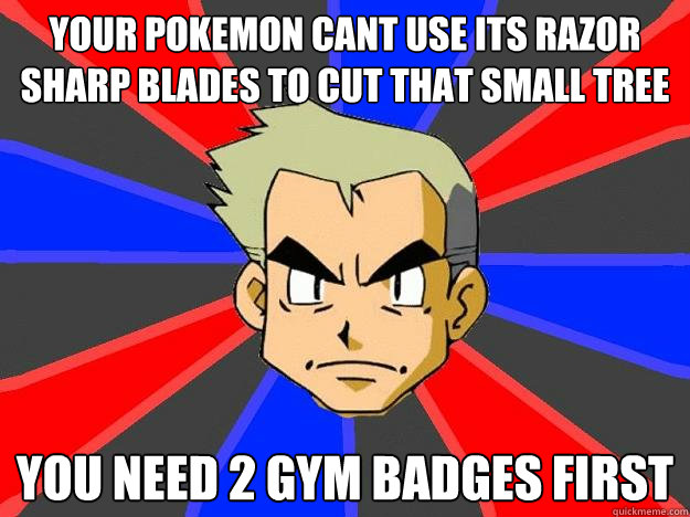 Your pokemon cant use its razor sharp blades to cut that small tree you need 2 gym badges first