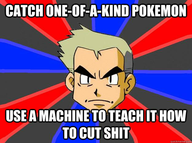 catch one-of-a-kind pokemon use a machine to teach it how to cut shit