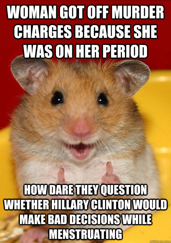 Woman got off murder charges because she was on her period How dare they question whether Hillary Clinton would make bad decisions while menstruating