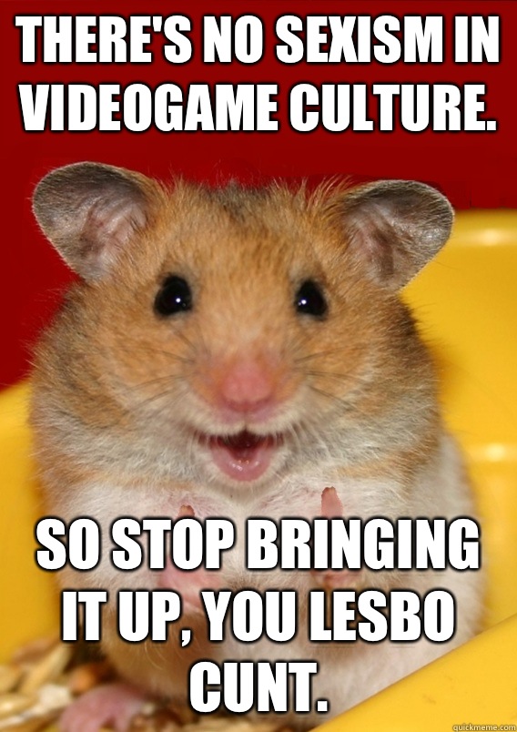 There's no sexism in videogame culture. So stop bringing it up, you lesbo cunt.