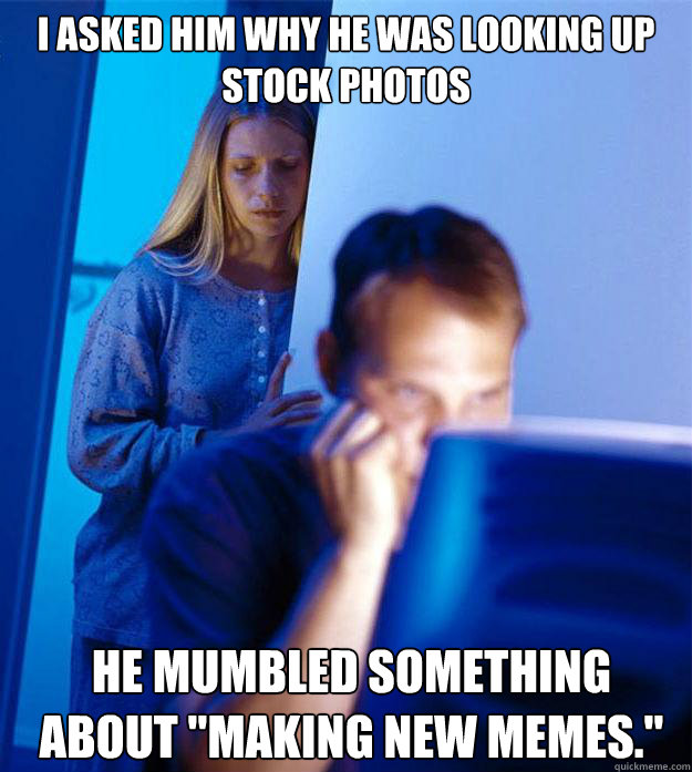 I asked him why he was looking up stock photos He mumbled something about "making new memes."