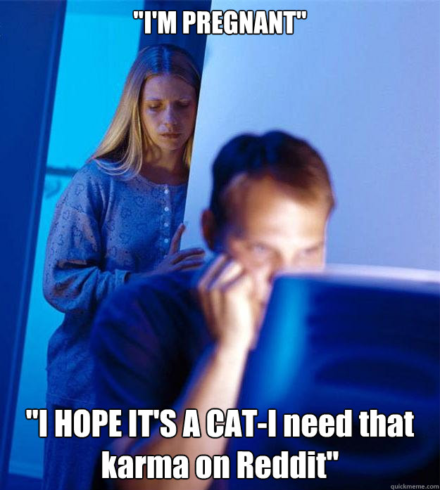 "I'M PREGNANT" "I HOPE IT'S A CAT-I need that karma on Reddit"