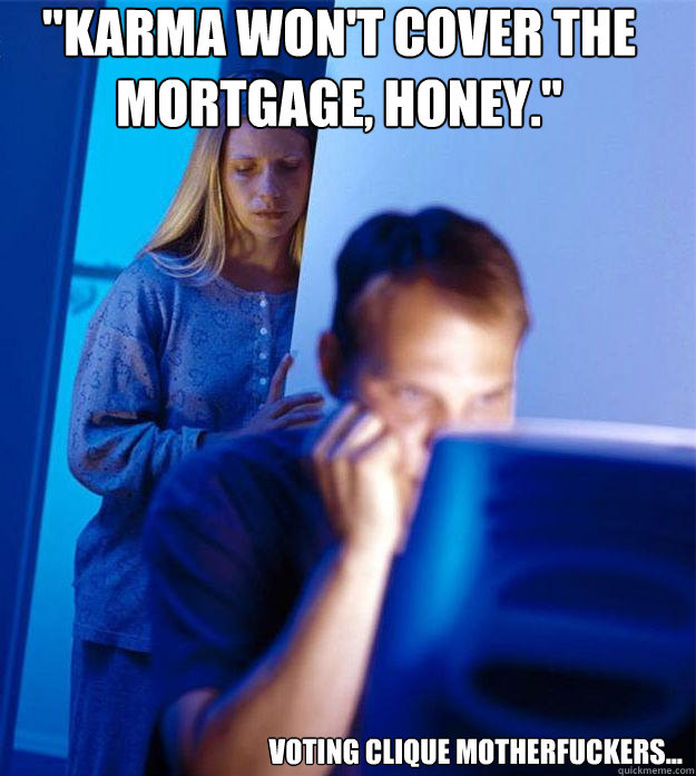"Karma won't cover the mortgage, honey." voting clique motherfuckers...