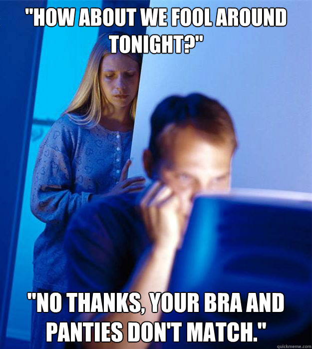 "How about we fool around tonight?" "No thanks, your bra and panties don't match."